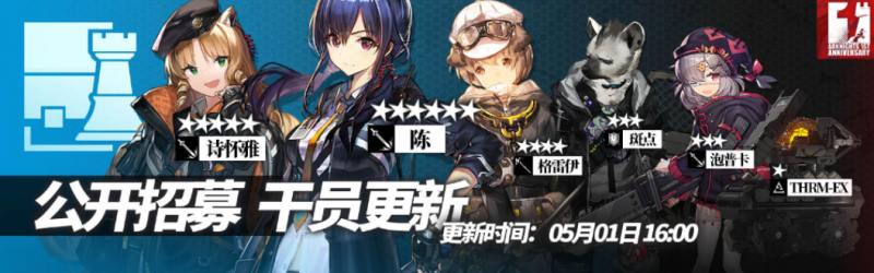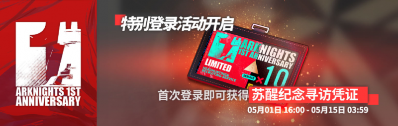 本次【公开招募】干员更新时 ,收集「游击队员徽章」,庆活「一周年庆典」,动福新干员登场